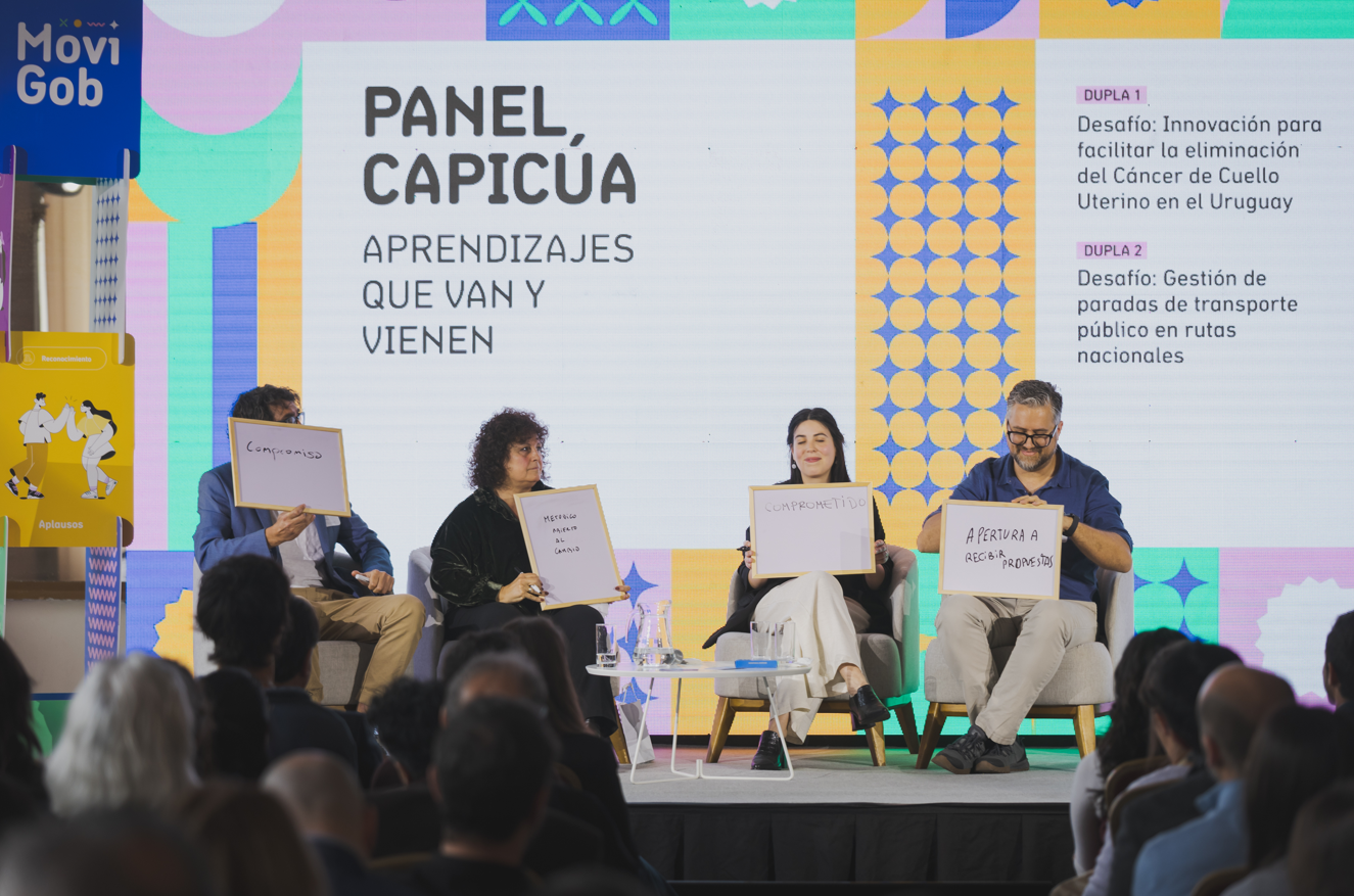 Luego llegó el momento de un panel, que tuvo como objetivo mostrar el ida y vuelta entre instituciones públicas y empresas innovadoras que se unieron para resolver desafíos concretos a través de innovación. En esta edición se presentaron la dupla compuesta por la Comisión Honoraria de Lucha contra el cáncer y Digital Project, quienes trabajaron junto con Atgen y Thaleslab, en el desafío denominado “Innovación para facilitar la eliminación del Cáncer de Cuello Uterino en el Uruguay”; y del Ministerio de Transporte y Obras Públicas y EnginLabs que se encuentran trabajando en un prototipo de solución junto a la Facultad de Ingeniería de la Universidad de Montevideo en el desafío denominado “Gestión de paradas de transporte público en rutas nacionales”.